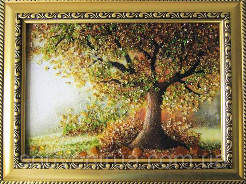 Прекрасне доповнення інтер'єру у вигляді картини з натурального бурштину.